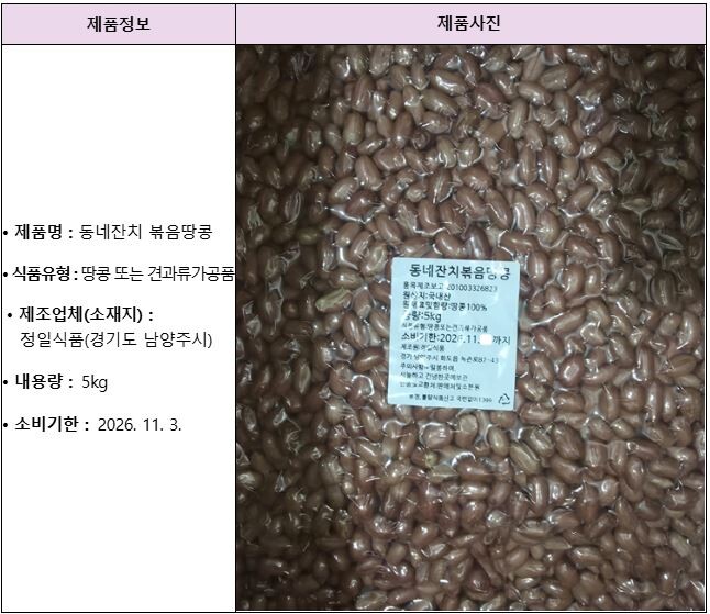 곰팡이독소 ‘아플라톡신’ 초과 검출된 ‘볶음땅콩’ 제품 판매중단·회수조치