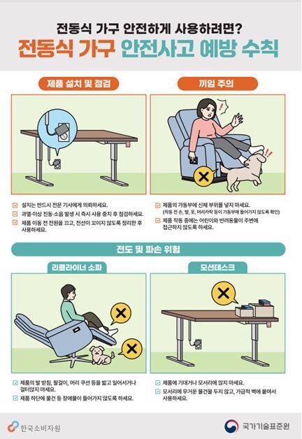 [매일안전신문=김진섭 기자] 국가기술표준원이 전동식 가구로 인한 안전사고를 사전 예방하기 위해 안전 사용 수칙을 안내하는 홍보 캠페인을 실시한다.