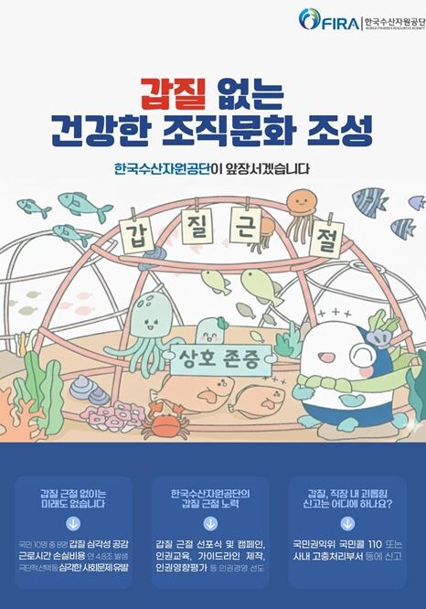 한국수산자원공단 감사법무실 권지영 주임은 “갑질은 단순한 개인의 일탈을 넘어 조직 전체의 신뢰를 무너뜨리는 행위”라며, “현장의 목소리에 귀 기울여 갑질을 유발할 수 있는 잠재적 요인을 선제적으로 관리하여, 국민이 체감할 수 있는 변화를 만들어 가는 데 앞장서겠다.”고 전했다.