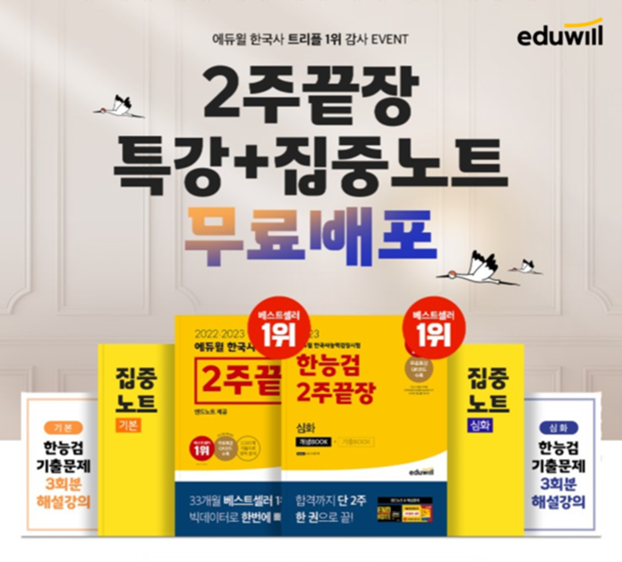 한편 ‘2주끝장 특강’에 대한 자세한 내용은 에듀윌 한국사능력검정 홈페이지를 통해 확인할 수 있다.