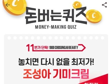 '조성아 기미크림' 캐시워크 돈버는 퀴즈 문제가 변경되면 정답이 바뀔 수 있다.