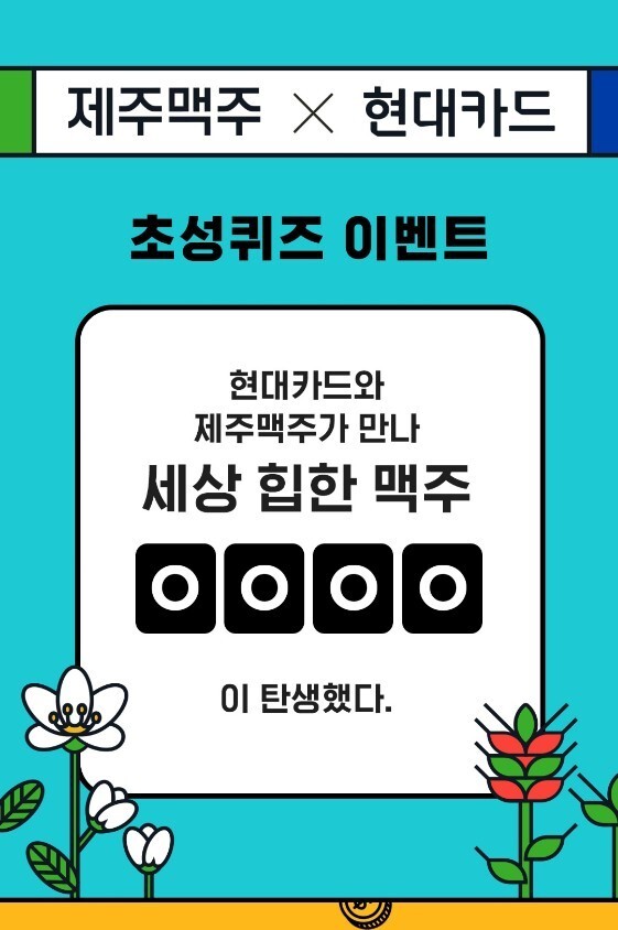 현대카드 제주맥주 이벤트는 "현대카드와 제주맥주가 만나 세상 힙한 맥주 ○○○○이 탄생했다." 이 문제로 나왔다.