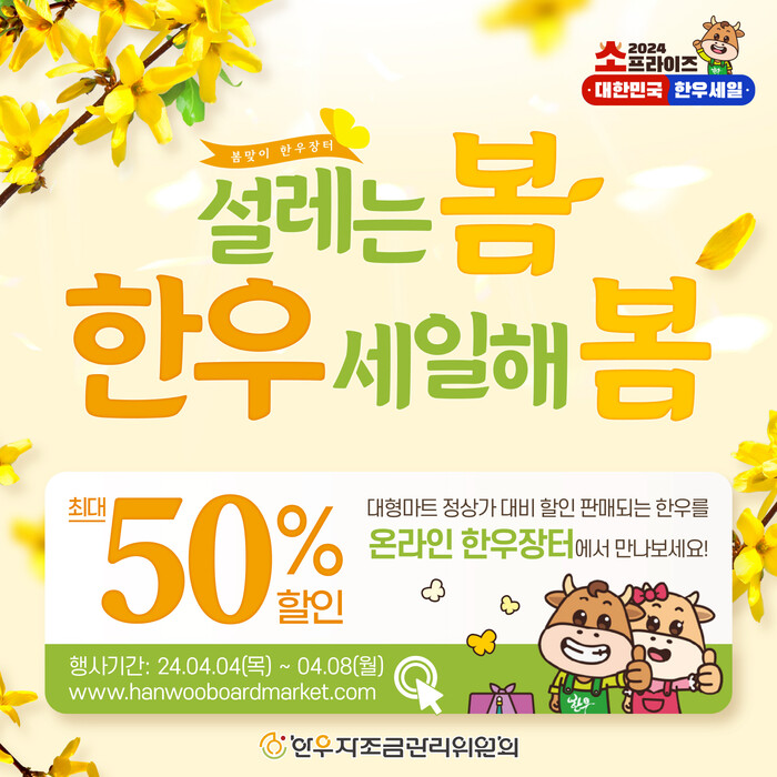 한우자조금관리위원회가 4월 4일부터 8일까지 5일간 ‘봄맞이 온라인 한우장터’를 개최한다고 밝혔다.