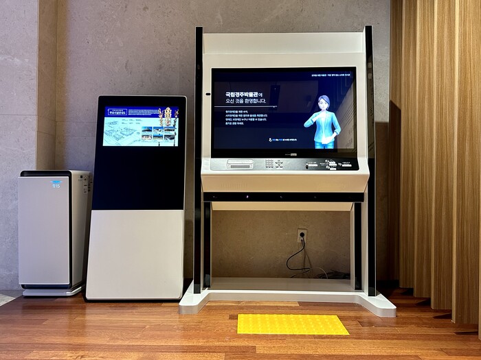 이 서비스는 ‘이용 장벽 없는 스마트 전시관’ 사업의 대표 성과로, 누구나 박물관에 설치된 인공지능 기반 전시안내 키오스크를 활용해서 박물관의 시설·전시·교육·행사·최신 소식 등 각종 정보를 확인할 수 있다. 국립경주박물관 신라역사관 입구와 신라미술관 로비에 키오스크가 1대씩 설치되어 있다.