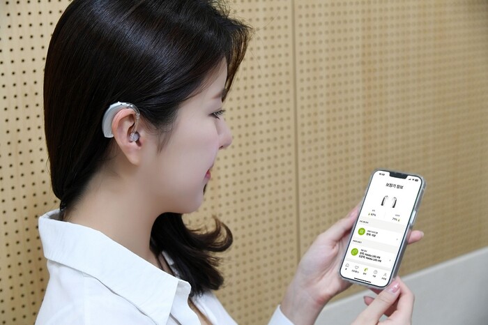 포낙보청기가 25일 서울 금천구 소노바코리아 본사에서 강력한 고출력의 귀걸이형 보청기 포낙 나이다 루미티를 선보이고 있다. 포낙 나이다 루미티는 충전식과 배터리식 두 가지 모델로 출시됐으며, 고심도 난청인에게 적합한 형태의 보청기로 효도폰을 포함한 모든 전자기기와 블루투스로 다이렉트 연결되어 보청기로 전화통화가 가능한 것이 특징이다.