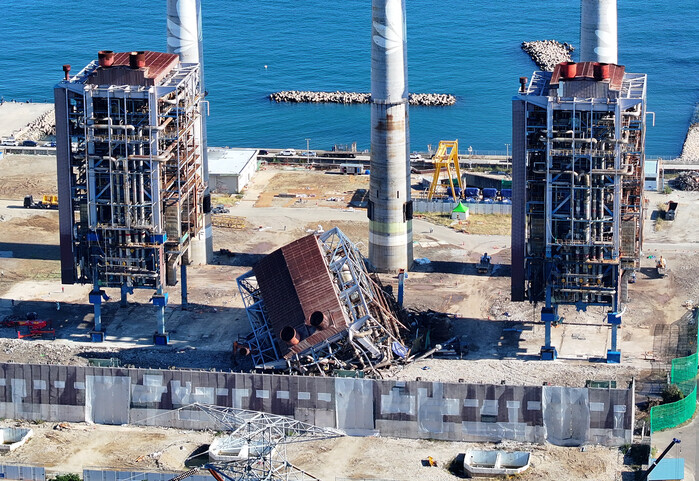 | ▲ 발파 해체 앞둔 울산화력 보일러타워 지난해 11월 10일 오후 울산화력발전소 보일러 타워 붕괴 현장 모습.(연합뉴스 제공) |